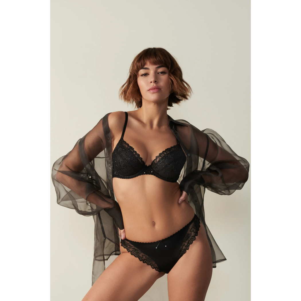 Αυτό το σουτιέν push-up έχει σέξι ντεκολτέ διακοσμημένο με λεπτό κέντημα. Μπορείτε να επιλέξετε περισσότερο ή λιγότερο ανύψωση του στήθους σας χάρη στα αφαιρούμενα μαξιλαράκια από A έως E-cup.