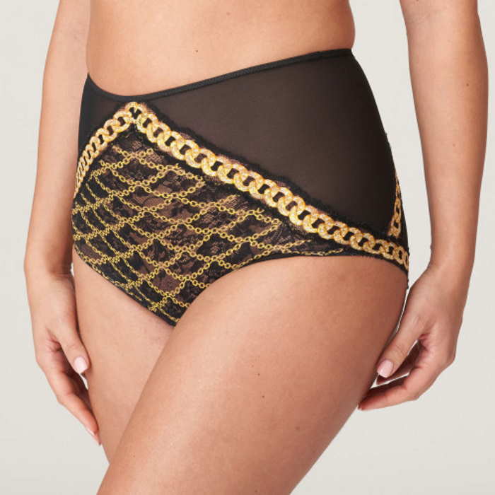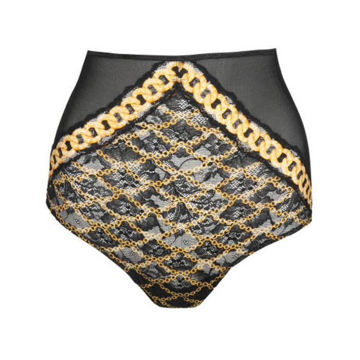 Ρετρό ψηλόμεσο σλιπ από δαντέλα και τούλι με σέξι κόψιμο και χρυσό μενταγιόν στο πίσω μέρος. Αυτά τα σλιπ είναι κατασκευασμένα από ανακυκλωμένη δαντέλα με στάμπα αλυσίδας που ακολουθεί το περίγραμμα του σώματός σας. Η ελαστική δαντέλα ταιριάζει σαν όνειρο και το λεπτό φινίρισμα εξασφαλίζει την τέλεια εφαρμογή.