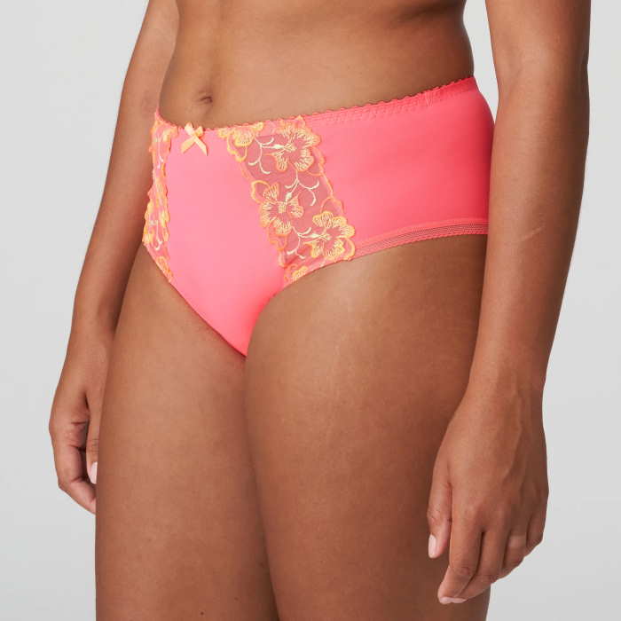 Αυτά τα πολυτελή, αδιαφανή ψηλόμεσα σλιπ διαθέτουν πολύχρωμα κεντήματα στο μπροστινό μέρος με ελαστική επένδυση στο κάτω μέρος.