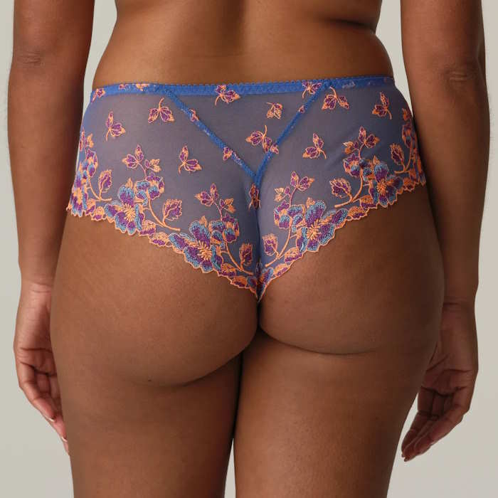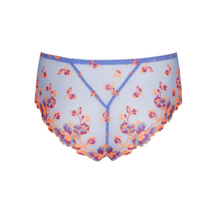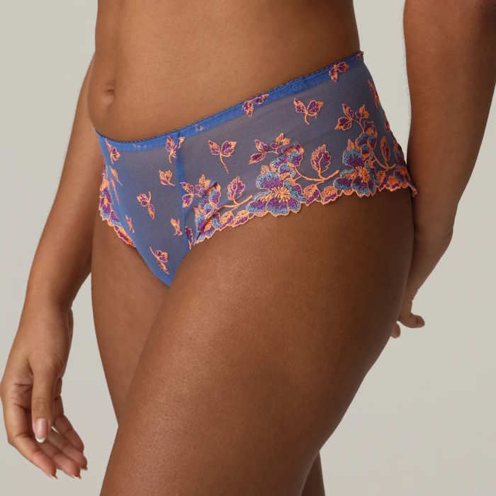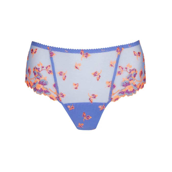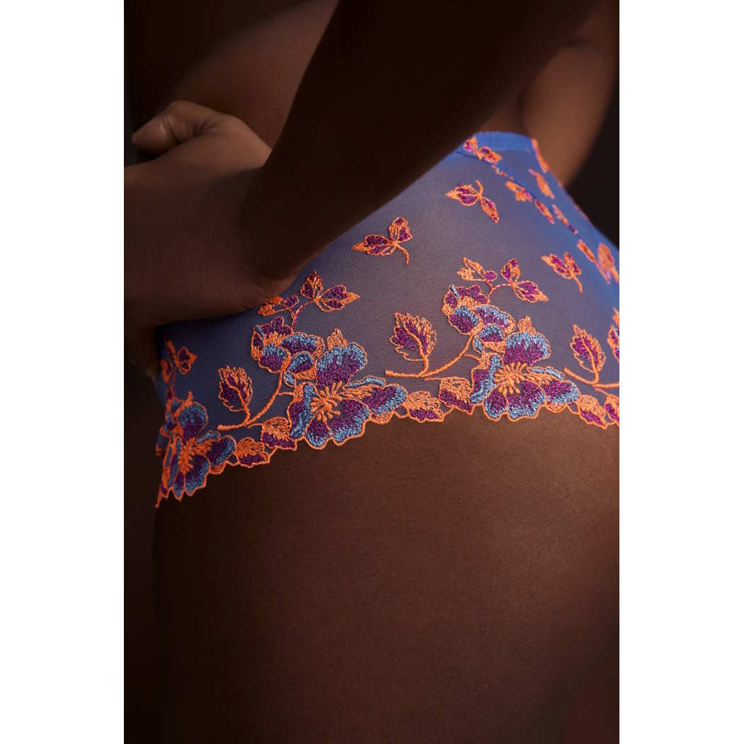 Πολυτελές string με ψηλό κόψιμο στα πόδια και πάνελ από τούλι ή δαντέλα στο πίσω μέρος.