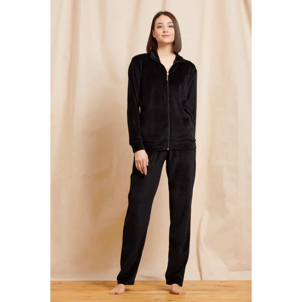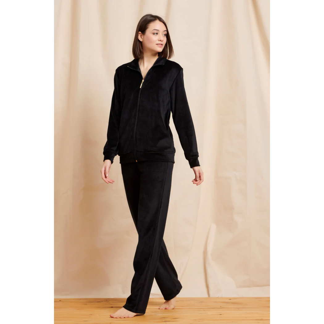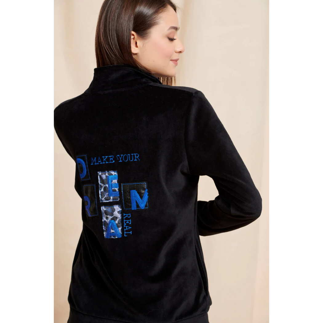 ♥️Σετ φόρμας σε βελούδο, ζακέτα και παντελόνι. Ζακέτα με γιακά και σχέδιο στην πλάτη με τη φράση: "Make Your Dream".