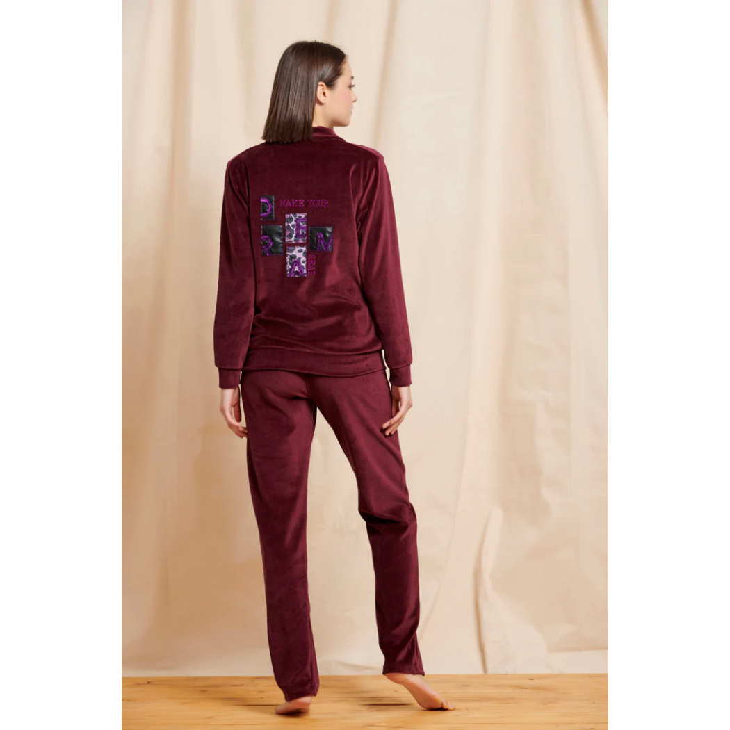 ♥️Σετ φόρμας σε βελούδο, ζακέτα και παντελόνι. Ζακέτα με γιακά και σχέδιο στην πλάτη με τη φράση: "Make Your Dream".