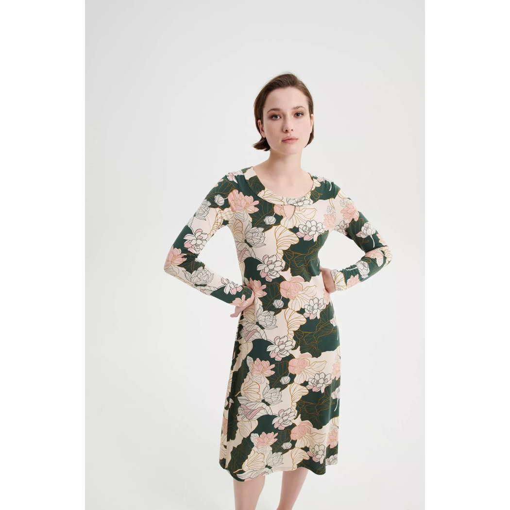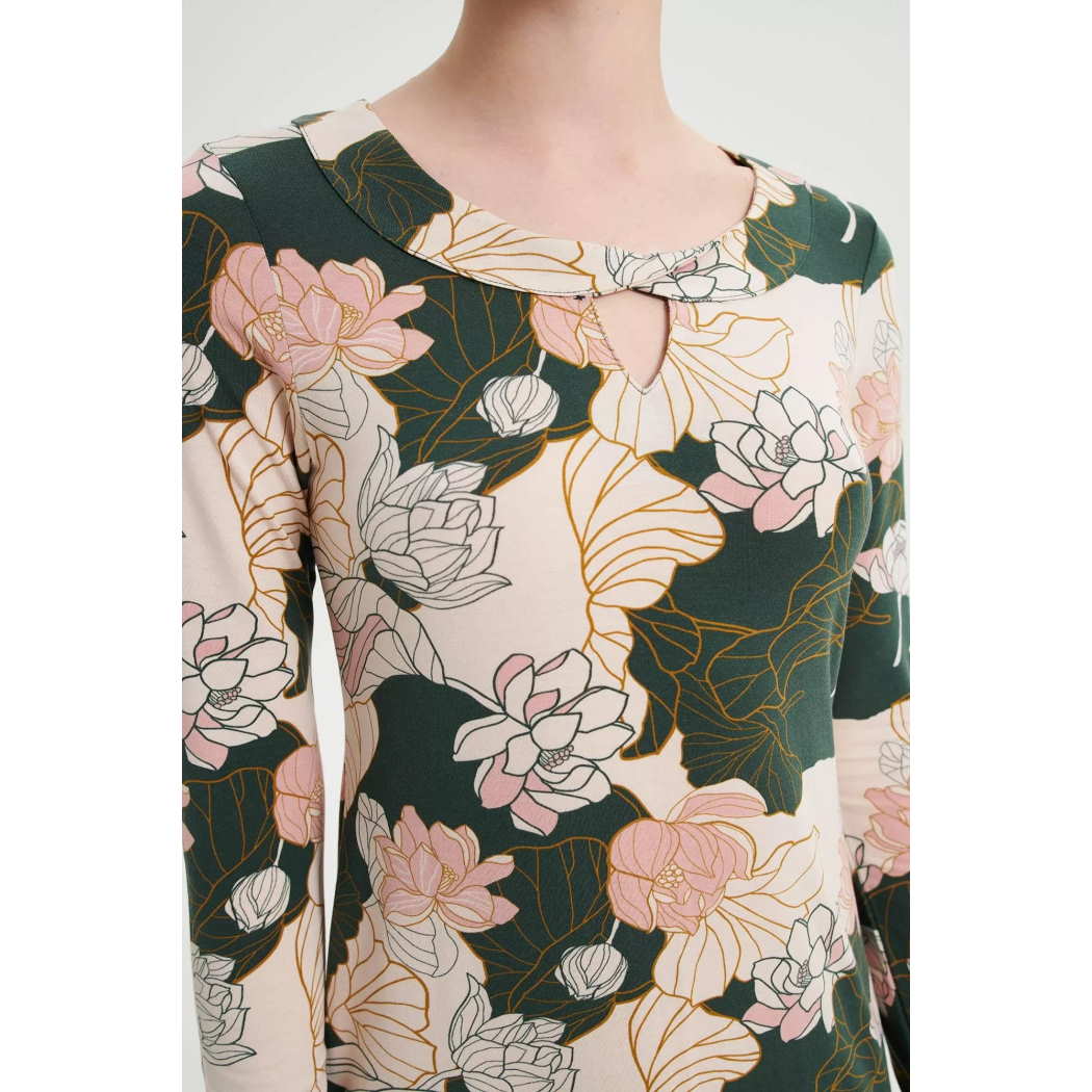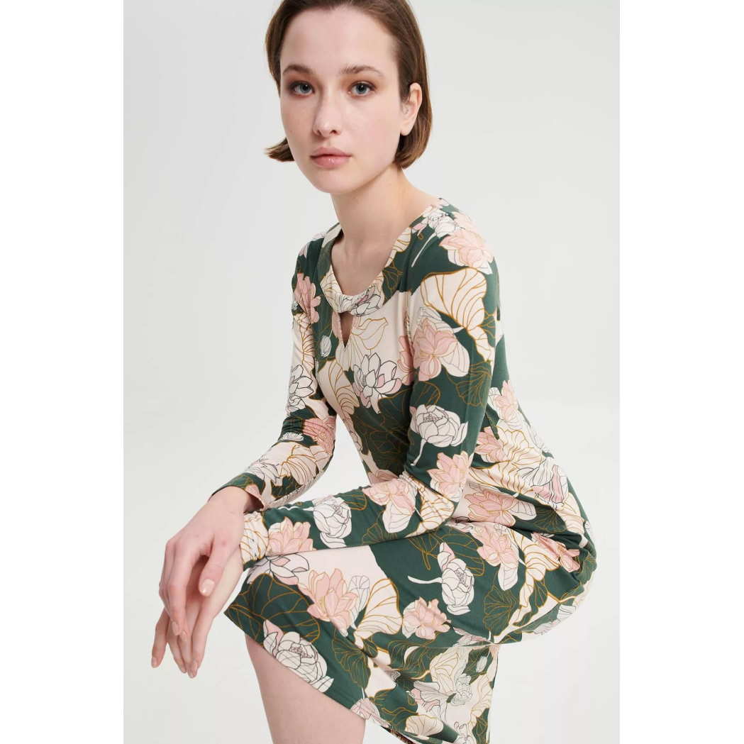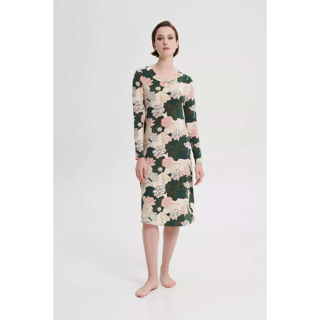 Φλοράλ νυχτικό με μακρύ μανίκι και ιδιαίτερη, στρογγυλή λαιμόκοψη . Η ανάλαφρη εφαρμογή και το απαλό ύφασμα θα σας δώσουν την άνεση και τη κομψότητα που σας αξίζει.