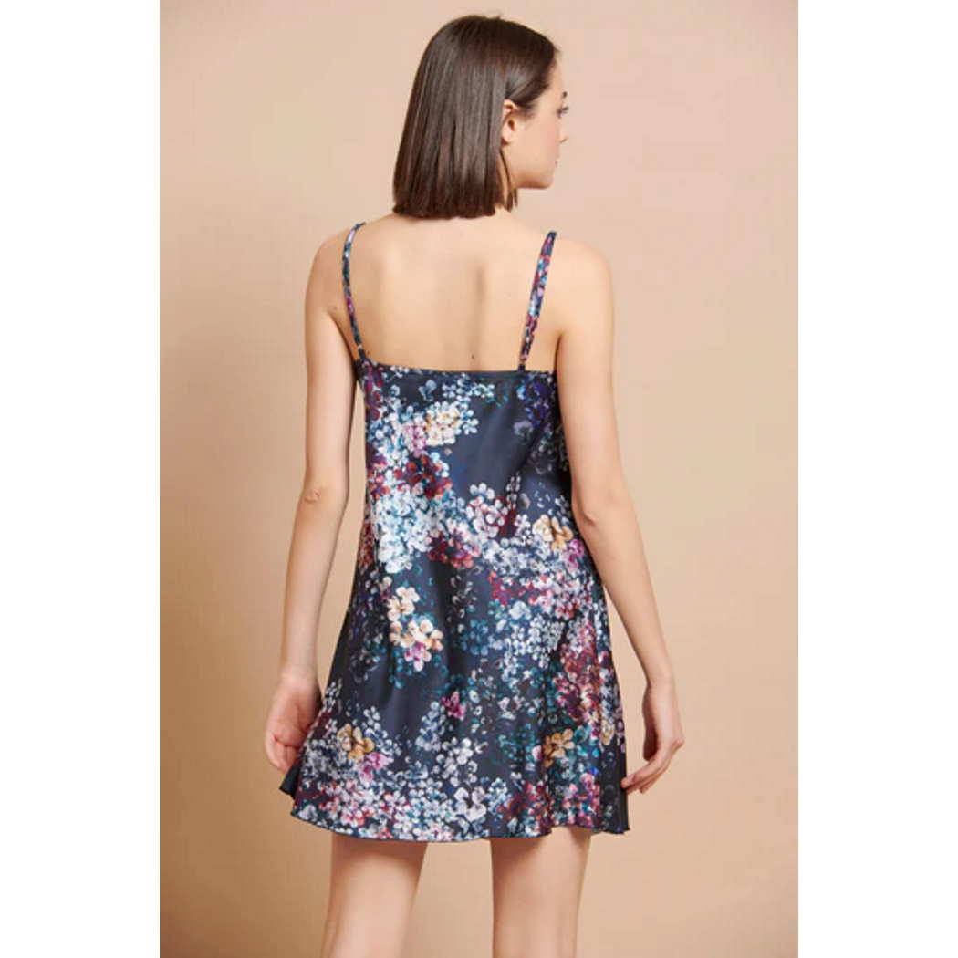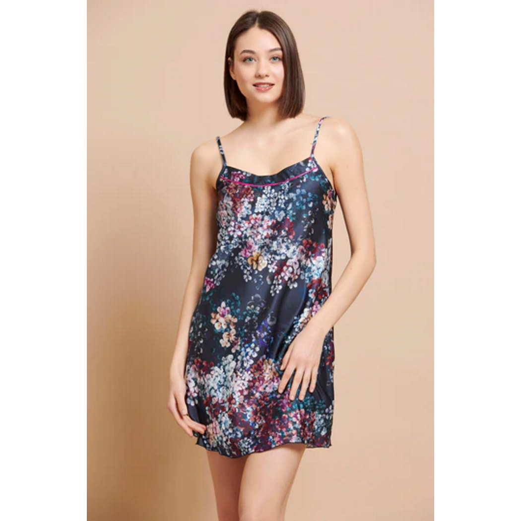 ♥️Σατέν νυχτικό εμπριμέ με μοτίβο λουλούδια και ρυθμιζόμενες τιράντες.