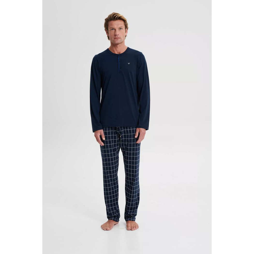 Ανδρική πυτζάμα με πατιλέτα, μονόχρωμο τοπ και καρό παντελόνι. Μια κλασική πρόταση που θα φορέσετε ευχάριστα όλη την ημέρα