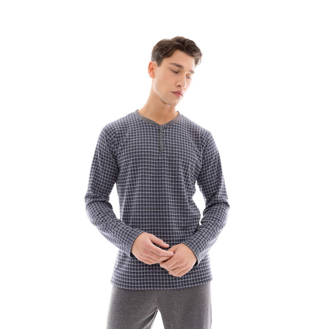 ΑΝΔΡΙΚΗ ΠΙΤΖΑΜΑ 100% ΒΑΜΒΑΚΙ ΜΠΛΟΥΖΑ ΜΕ ΠΑΤΙΛΕΤΑ ΜΠΛΕ ΓΚΡΙ ΚΑΡΟ ΜΕ ΜΠΛΕ ΜΟΝΟΧΡΩΜΟ ΠΑΝΤΕΛΟΝΙ ΜΕ ΜΑΛΑΚΟ ΛΑΣΤΙΧΟ ΣΤΗ ΜΕΣΗ.