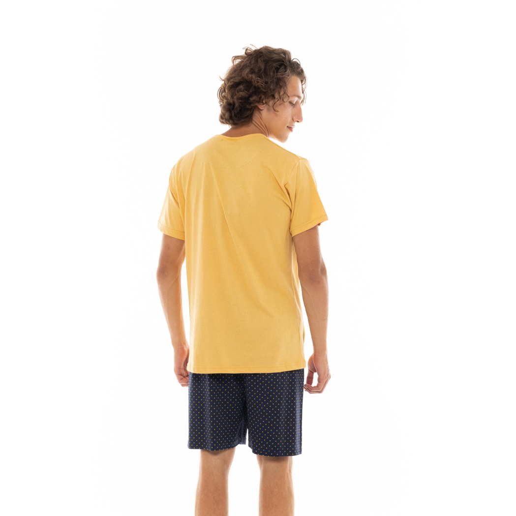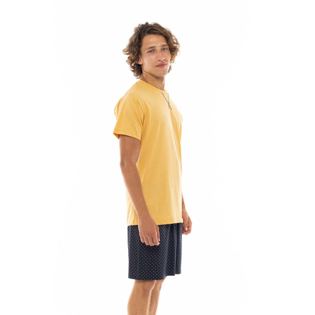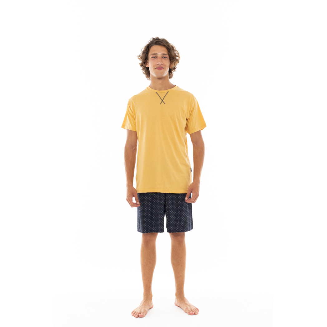 ΑΝΔΡΙΚΗ ΠΥΖΑΜΑ ΚΟΝΤΟΜΑΝΙΚΗ ΜΟΝΟΧΡΩΜΗ ΚΙΤΡΙΝΗ ΛΑΙΜΟΚΟΨΗ ΜΕ ΠΟΥΑ ΜΠΛΕ ΒΕΡΜΟΥΔΑ ΒΑΜΒΑΚΕΡΗ 100%