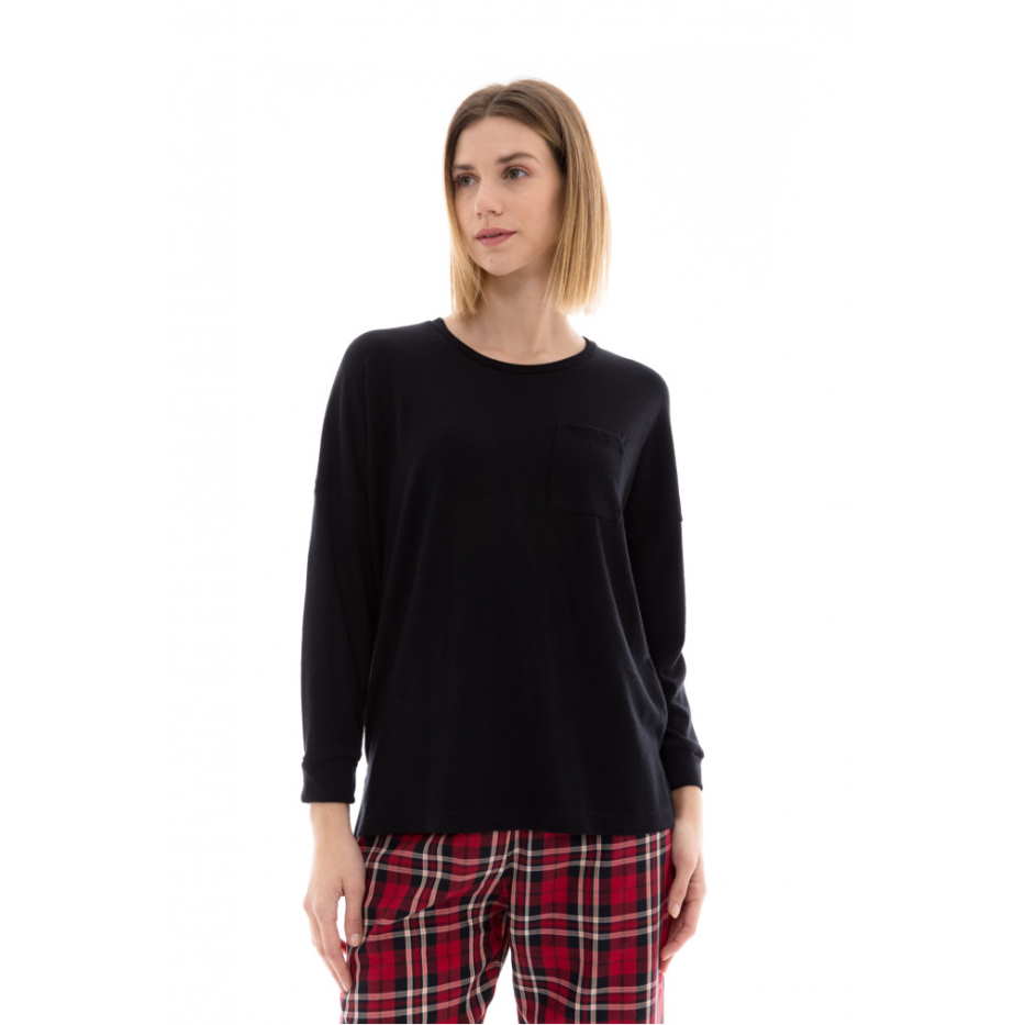 ΓΥΝΑΙΚΕΙΑ ΠΙΤΖΑΜΑ ΛΑΙΜΟΚΟΨΗ ΜΟΝΟΧΡΩΜΗ ΜΕ ΕΜΠΡΙΜΕ ΠΑΝΤΕΛΟΝΙ 100% ΒΑΜΒ