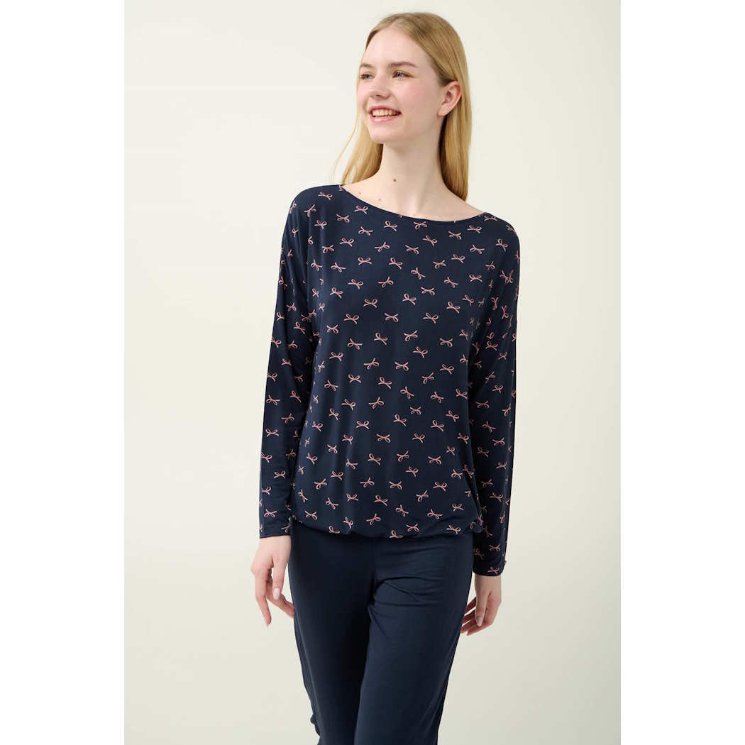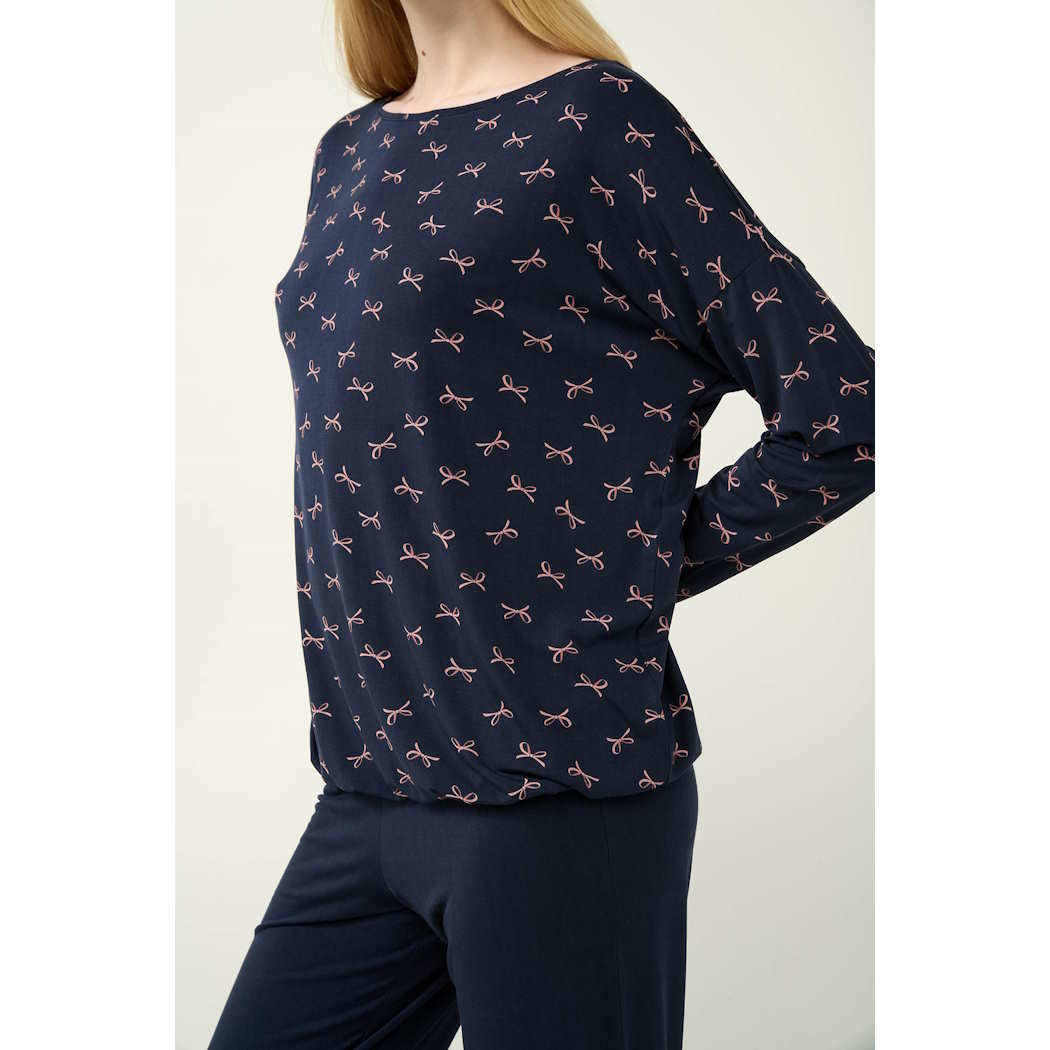 ΓΥΝΑΙΚΕΙΑ ΠΥΤΖΑΜΑ MICROMODAL ΣΕ ΜΠΛΕ ΦΟΝΤΟ ΜΕ ΡΟΖ ΦΙΟΓΚΑΚΙΑ ΣΤΗΝ ΜΠΛΟΥΖΑ