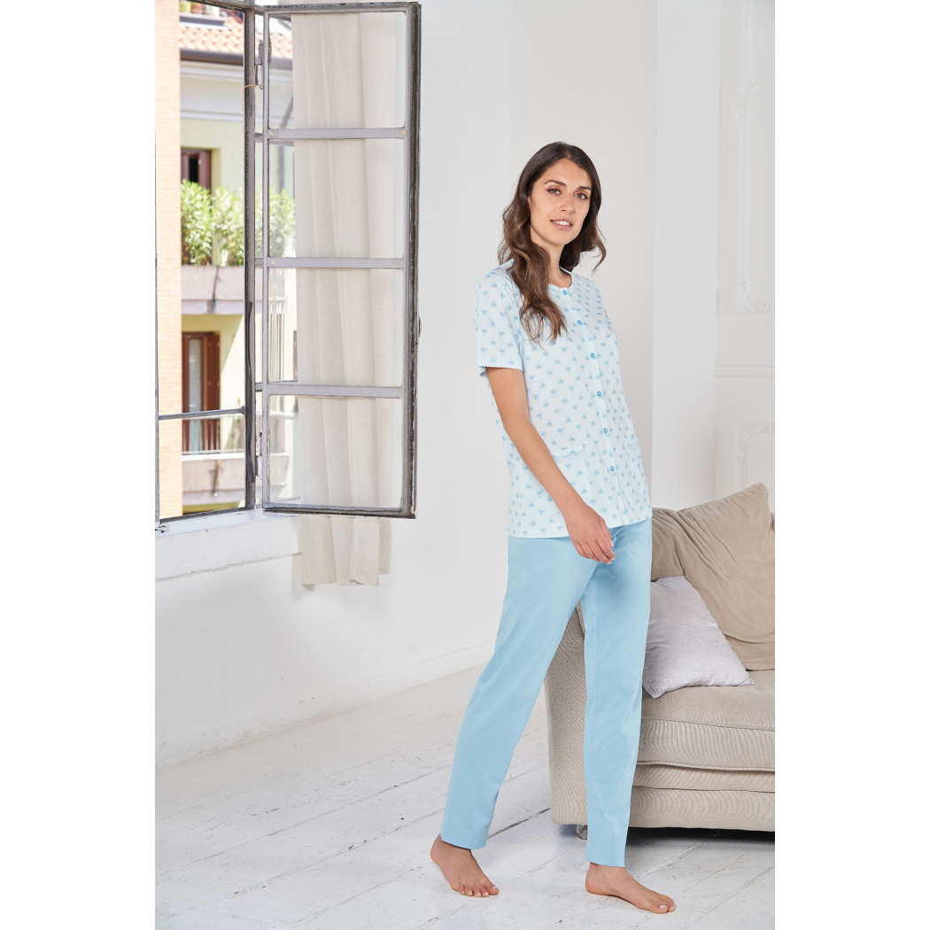 ΓΥΝΑΙΚΕΙΑ ΠΥΖΑΜΑ 100% ΒΑΜΒ ΙΤΑΛΙΑΣ ΜΠΛΟΥΖΑ ΜΕ ΚΟΥΜΠΙΑ ΣΙΕΛ ΜΕ ΣΧΕΔΙΑ ΜΕ ΜΑΚΡΥ ΠΑΝΤΕΛΟΝΙ ΣΙΕΛ ΜΟΝΟΧΡΩΜΟ