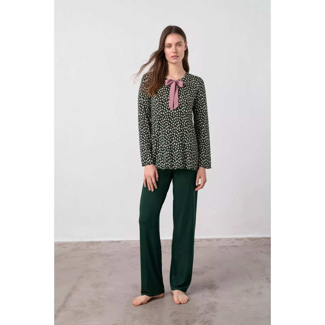 Γυναικεία πυτζάμα με μονόχρωμο παντελόνι και διακοσμητικό φιόγκο, ιδανική για μεγάλα μεγέθη. Απαλό ύφασμα, με μοντέρνα και χαλαρή διάθεση για όλη την ημέρα.S-6XL