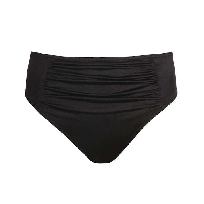 Bikini slip maxi από γυαλιστερό ύφασμα, με μικρές, κολακευτικές πιέτες μπροστά που κολακεύουν ιδιαίτερα.