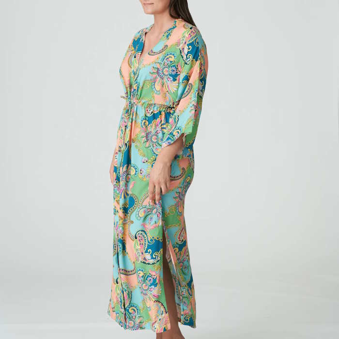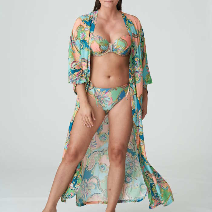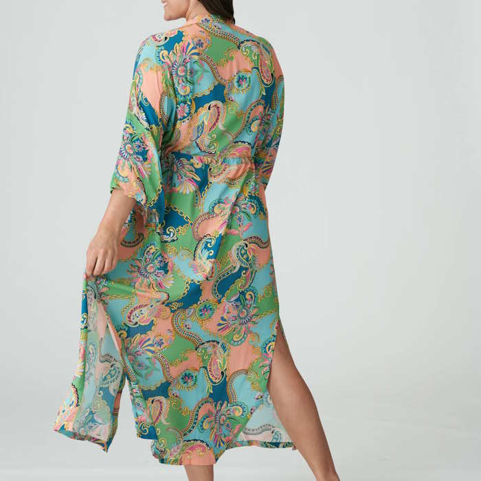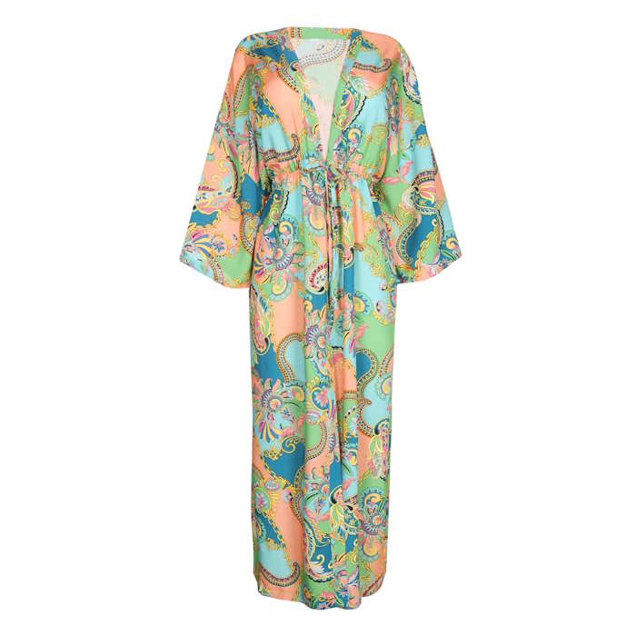 Κομψό κιμονό με μακριά, φαρδιά μανίκια, από flowy βισκόζη. Περάστε το κομψά πάνω από τα μαγιό σας για να περπατήσετε στην παραλία με στυλ ή να απολαύσετε ένα ποτό στον ήλιο.