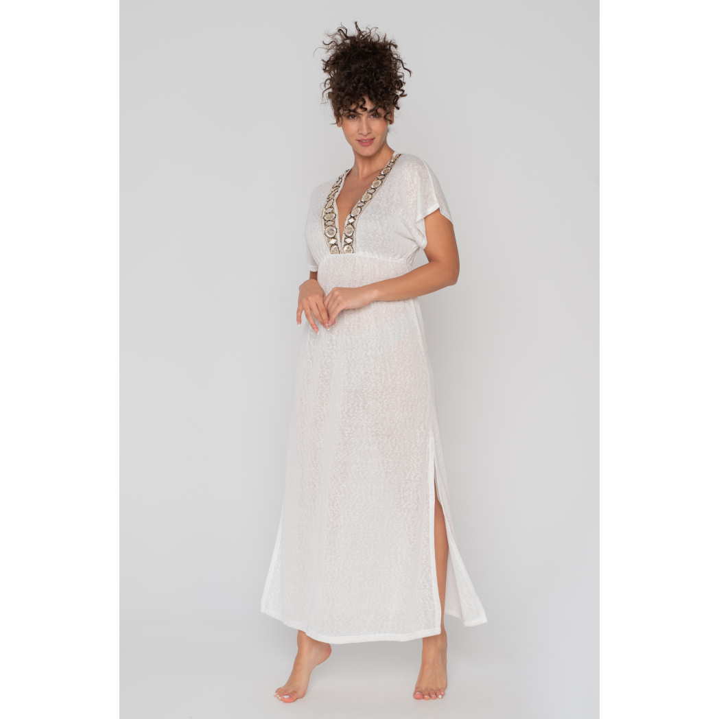 ΚΑΦΤΑΝΙ ΜΑΚΡΥ ΛΕΥΚΟ ΜΕ ΧΡΥΣΟ RAYON 53% POL 47%