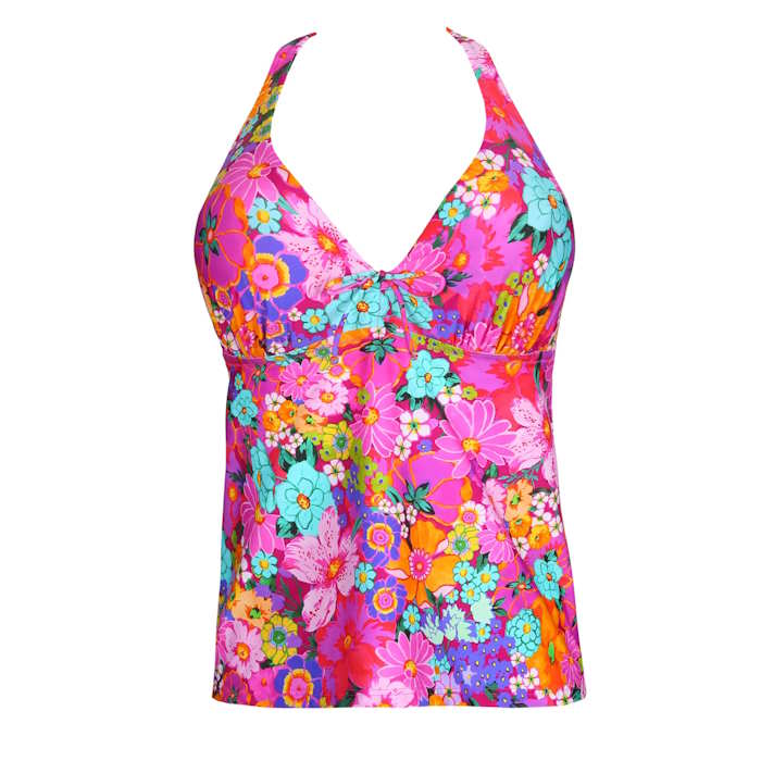 Μοντέρνο μπλουζάκι tankini σε πολύχρωμη φλοράλ στάμπα. Τα τριγωνικά κύπελλα είναι καλουπωμένα και αναδεικνύουν το δελεαστικό ντεκολτέ σας.